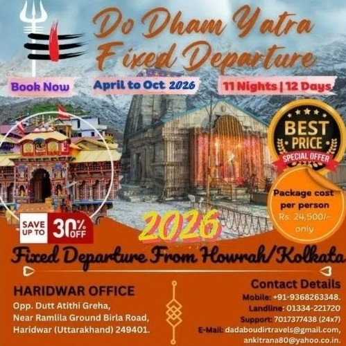 Pilgrimage tours in Uttarakhand are popular among devotees seeking a divine journey through the land of gods. True Hindu devotees experience spiritual bliss while visiting sacred sites like the Chardham. Uttarakhand offers a unique beauty that can only be felt on such tours. Dada Boudir Tour & Travels (Regd.) recommends taking the Chardham Tour Package with our fixed departure dates, perfect for both first-time and experienced pilgrims.